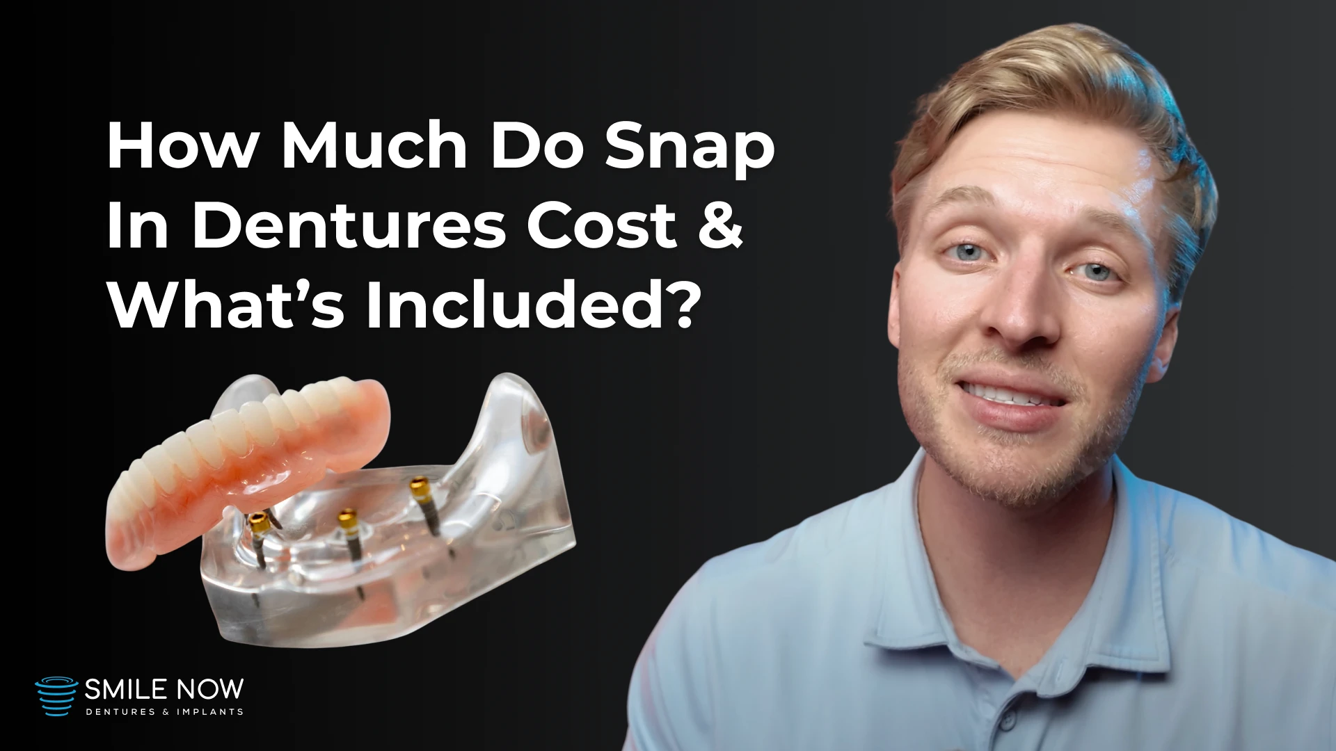 In the video above, Dr. Soren Paape breaks down the true cost of snap-in dentures, the factors that influence the price, and how Smile Now makes this life-changing treatment affordable and accessible, even for patients without dental insurance.